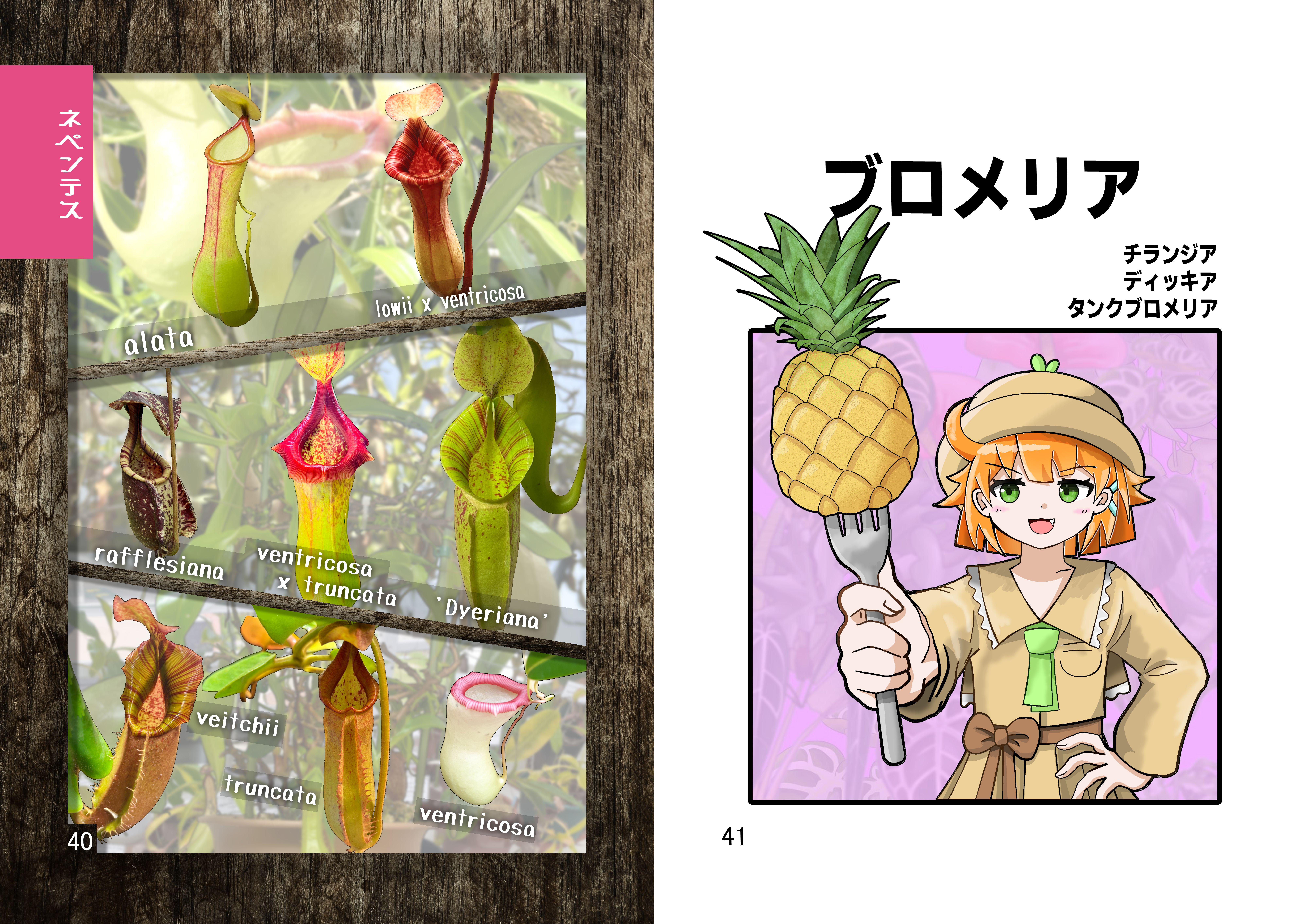 普通の植物図鑑のような統一されたデザインではなく、ページごとにテーマを決め独自のデザインを採用しています(というか一人で作りました)